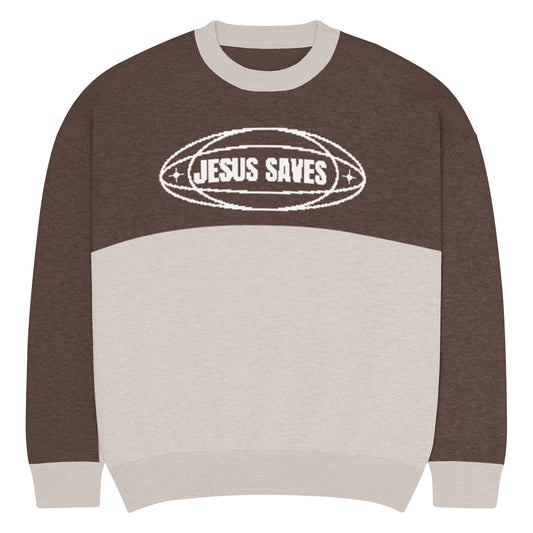Jesus Saves Sweater | Knitted crew neck sweater